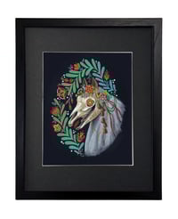 Also available ready to hang in lightweight wooden black frame with glass front. Back is wired and hand labeled.