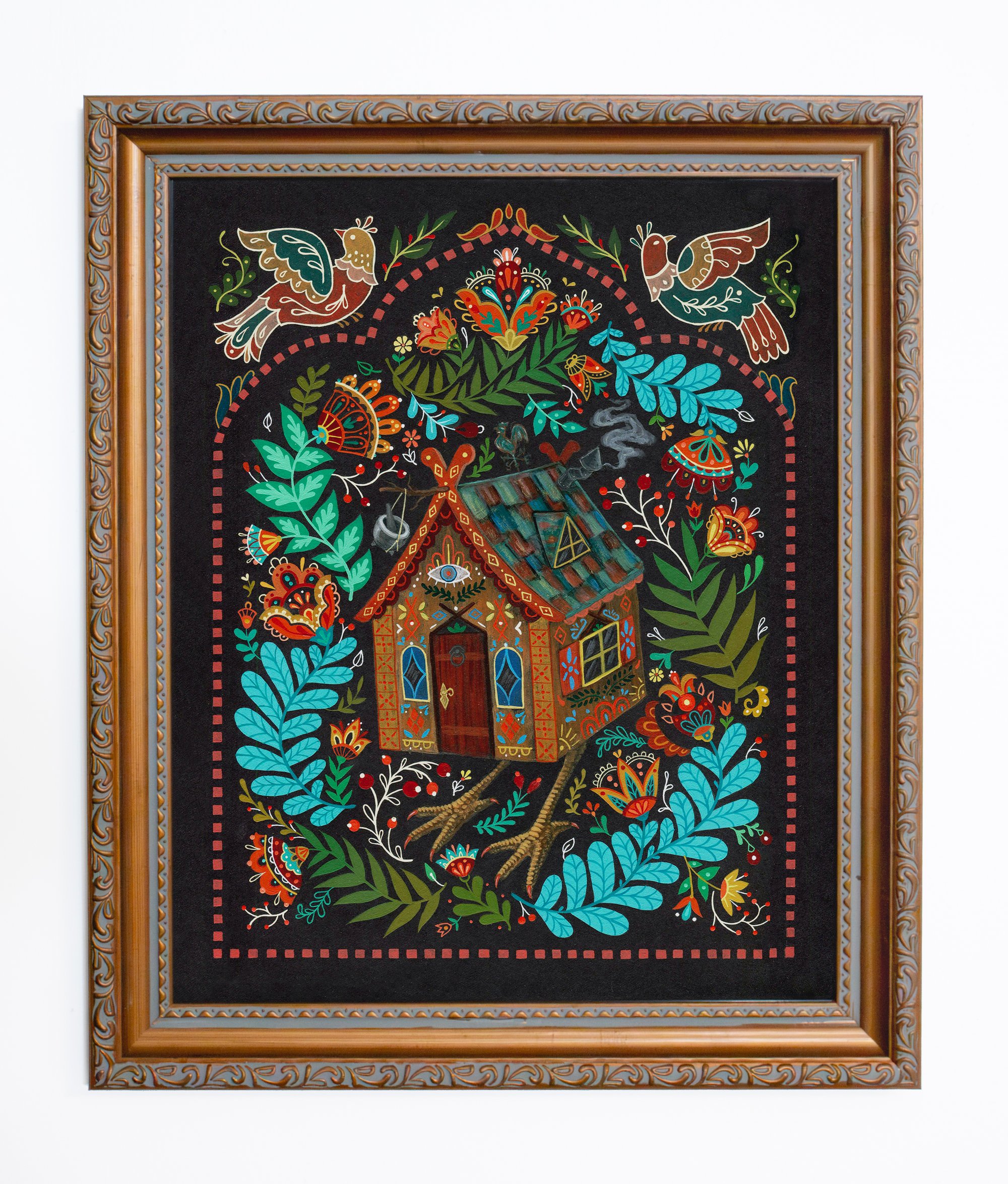 Framed 8"x 10" print of "Baba Yaga" on archival matte paper in ornate bronze frame.