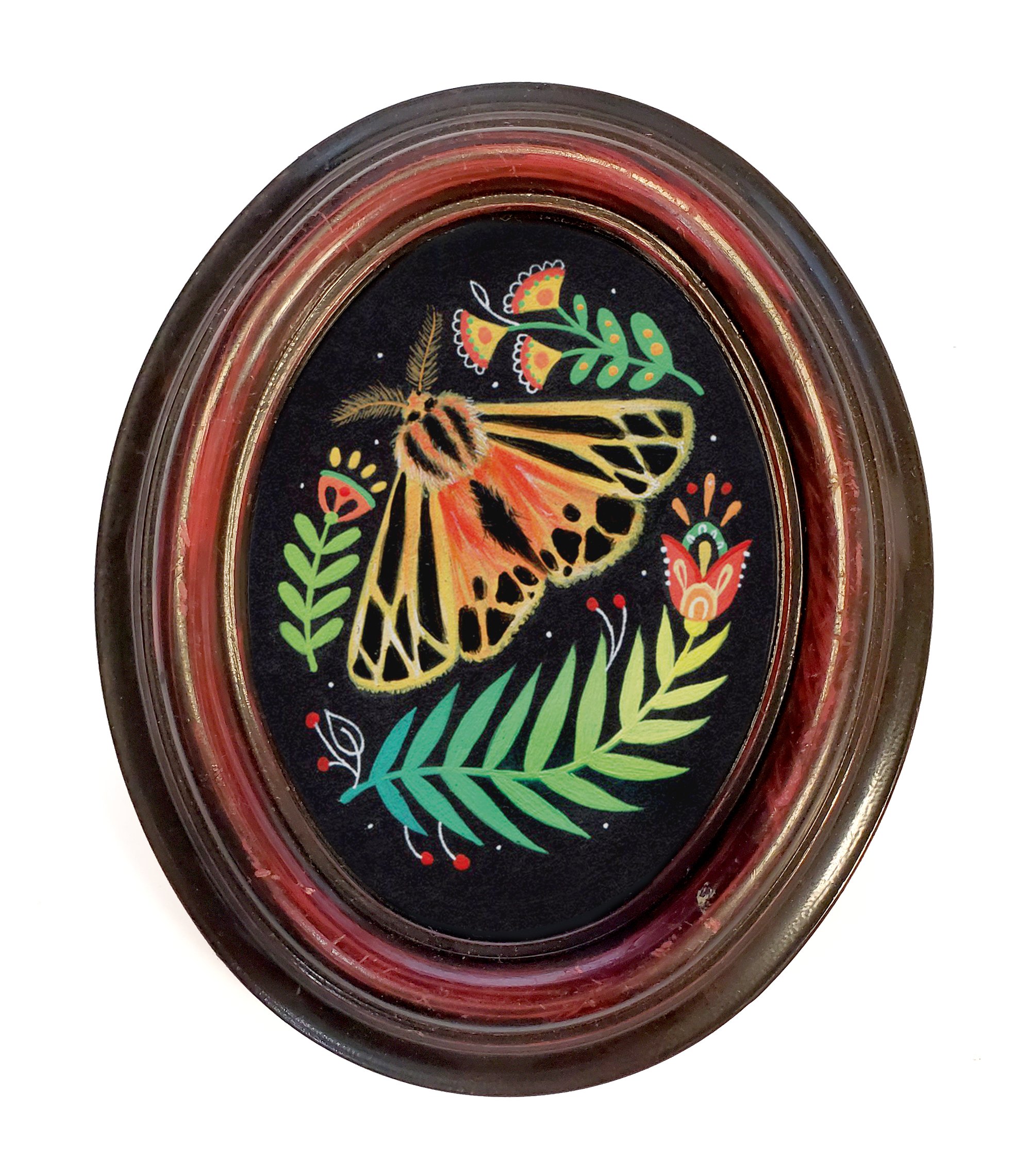 Framed archival pigment print of "Burning Bright" in small vintage plastic frame.